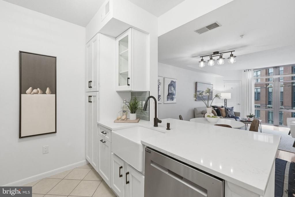 Prime Clarendon location! This rare and spacious one-bedroom unit with 839 sq ft is one of the larger one-bedroom floor plans in the building and offers the perfect blend of convenience and comfort. The open kitchen flows into the living area, with ample space for a true dining table, making it perfect for both everyday living and entertaining. Hardwood floors extend throughout the main living space. The kitchen was beautifully renovated in 2023 with new cabinetry, granite countertops, refrigerator, and dishwasher. The huge bedroom features a large walk-in closet with custom built-ins. The fully renovated bathroom (2023) showcases new tile, vanity, lighting, and mirror. Additional upgrades include a tankless hot water heater and washer and dryer (2024), as well as a new HVAC system installed in 2021. The dedicated garage parking space is conveniently positioned with extra room for opening car doors. Enjoy a full-service building with 24-hour concierge, fitness center, party and meeting rooms, and a newly renovated rooftop pool and sundeck. Unbeatable location within blocks to the Clarendon Metro, Trader Joe’s, parks, bike paths, and an incredible array of restaurants, nightlife, and shopping. This is urban living at its best!