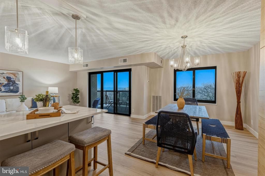 Welcome to 309 Yoakum Pkwy #1003 — a fully reimagined 10th-floor residence inside the gated Watergate at Landmark community. This home has been completely renovated with a clean, modern aesthetic and warm designer finishes throughout. The brand-new kitchen features custom flat-panel cabinetry in a natural wood tone, quartz countertops with full-height backsplash, stainless steel appliances, sleek hardware, open shelving accents, and a built-in stacked front-load washer and dryer seamlessly integrated into the cabinetry. It is both beautiful and highly functional. The bathrooms have been transformed into spa-inspired retreats with frameless glass shower enclosure, marble-look tile walls, mosaic shower flooring, recessed niche, quartz double vanity, and contemporary brushed nickel fixtures. Every detail feels intentional and elevated. New flooring, fresh paint, updated lighting, and thoughtful finishes throughout make this home truly move-in ready. Enjoy private balcony views from the 10th floor along with the unmatched amenities of Watergate at Landmark — indoor and outdoor pools, tennis courts, fitness center, sauna, walking paths, putting green, playground, and 24-hour gated security. Conveniently located near Van Dorn Metro, Old Town, Pentagon, National Airport, Amazon HQ2 and DC. Turn-key. Modern. Effortlessly stylish.