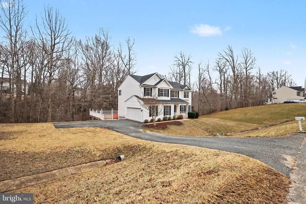 Move-In Ready 4BR Colonial with Wide-Plank Cherry Hardwood Floors, UPDATED Kitchen, Finished Basement & Side-Load Garage in Poplar Hills! LOWEST Priced home in Poplar Hills since 2021!!! Step into a bright two-story foyer with updated chandelier and rich wide-plank cherry hardwood flooring that carries through the living room, dining room, family room, and upper hallway. Nine-foot ceilings on the main level create an open, airy feel. The living and dining rooms feature crown molding and abundant natural light, with a bay window anchoring the dining space. The kitchen is a standout with 42-inch raised panel white cabinetry, granite countertops, center island with breakfast bar overhang, 12x24 ceramic tile flooring, recessed lighting, pantry closet, and brand-new stainless steel appliances including double wall oven, cooktop with downdraft, and French door refrigerator. The breakfast area opens to the rear deck through sliding glass doors. The family room offers cherry hardwood floors, ceiling fan, and a propane fireplace with stone hearth and surround. Upstairs, the primary suite features cathedral ceilings, two walk-in closets, cherry hardwood floors, and a spacious bath with marble flooring, dual-sink vanity with prep station, corner soaking tub, and separate tiled shower. Three additional bedrooms with hardwood flooring and double-door closets share a hall bath with marble floors and ceramic tile tub/shower surround. The finished basement includes a large recreation room with recessed lighting, new carpet, sliding glass door to the backyard, egress windows, and rough-in for a future full bath. Exterior highlights include architectural shingles, vinyl siding, covered concrete front porch, large rear deck, wooded backdrop, and side-load two-car garage with opener, workbench, and cabinetry. Systems include propane heat and fireplace, 50-gallon propane water heater (2022), conventional 4-bedroom septic system, private well, radon remediation system, and water treatment system. Fresh paint, new carpet, and brand-new kitchen appliances & lighting make this home truly move-in ready. Located near Crows Nest, VRE, Historic Aquia Landing, Several Marinas AND So Much More! ***Any Offer Submissions Need to be Received by Sunday Night 3/8 for Review and Response on Monday 3/9***
