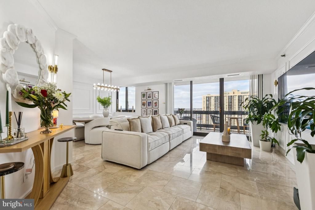 Elevated renovations • 2-bedroom residence • Gorgeous skyline views • Oversized private balcony • Marble floors in living & dining areas • Wine bar entry • In-unit laundry • Walk-in closet • Garage parking + storage! Rooftop deck, penthouse meeting room, pool, fitness center & 24-hour concierge. Welcome to Unit 1810N at Skyline Square, a rare, showcase residence offering an elevated luxury lifestyle. Recently renovated with a designer’s eye, this home blends refined finishes, thoughtful flow, and breathtaking views. The entry sets the tone with a custom wine bar foyer, leading into dramatic living and dining spaces with polished marble floors and expansive windows framing sweeping DC skyline views. The renovated kitchen features quartz countertops, custom two-tone cabinetry, new stainless steel appliances, and a generous island ideal for entertaining. Enjoy seamless indoor-outdoor living with an oversized private balcony, accessible from both the living room and secondary bedroom, perfect for morning coffee or evening city lights. The primary bedroom offers a walk-in closet, upgraded en-suite and serene retreat, while the second bedroom provides flexibility for guests or a home office. The updated bathrooms feature modern finishes, and in-unit washer and dryer add everyday convenience. Additional features include one assigned garage parking space and a private storage unit Skyline Square amenities include a 24-hour concierge, outdoor pool, fitness center, tennis courts, rooftop deck, and penthouse meeting/party room. Convenient access to I-395, Route 7, and Route 50, with an easy commute to DC, Arlington, Alexandria, the Pentagon, and Amazon HQ2. Water is included in the condo fee; tenant responsible for remaining utilities.