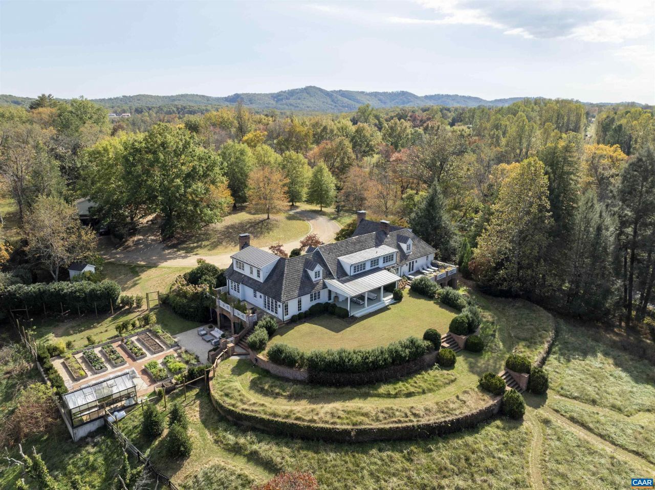 Fairhill - A remarkable property of significant architectural quality offering a timeless blend of English country design & modern livability on 6.67 private acres, walkable to village of Ivy, and less than 5 miles west of Charlottesville. The main residence (just over 7,000 fin.sq.ft) features exquisite living spaces & exceptional craftsmanship throughout, including a stunning library with custom bookshelves & wood-burning fireplace. The fully outfitted chefs kitchen with marble counters, stainless appliances & two walk-in pantries invites cooking, entertaining & true garden-to-table living. French doors & multiple terraces create seamless indoor-outdoor flow with views of terraced lawns & Little Ivy Creek. A professionally designed culinary garden with greenhouse & irrigated raised beds brings a purposeful connection between the kitchen & the landscape. The main-level primary suite enjoys its own private patio connecting to the grounds. Four additional bedrooms offer plenty of space for family. There is an impressive 2-bedroom guest cottage with full kitchen and wood-burning fireplace that provides luxurious accommodations for guests or extended stays. A rare opportunity in one of Albemarle Countys most desirable settings.